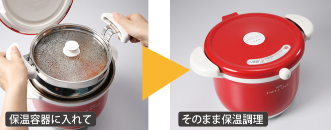 調理鍋を火からおろし、保温容器に入れて約40分保温する。