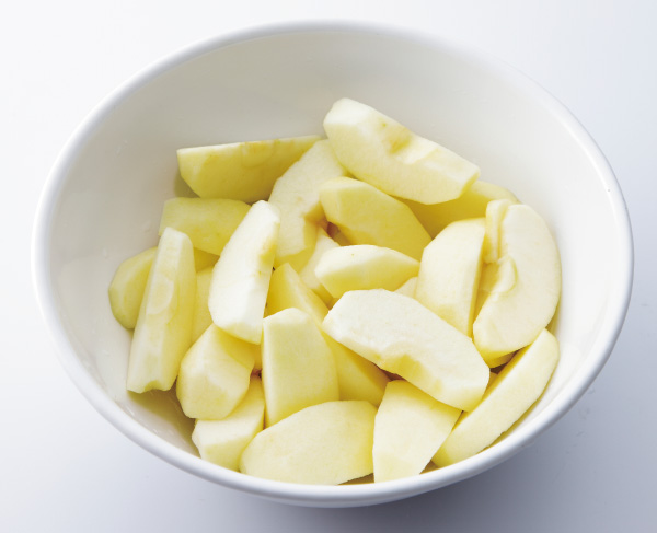リンゴの皮をむき、8~12等分の櫛形切りにする。