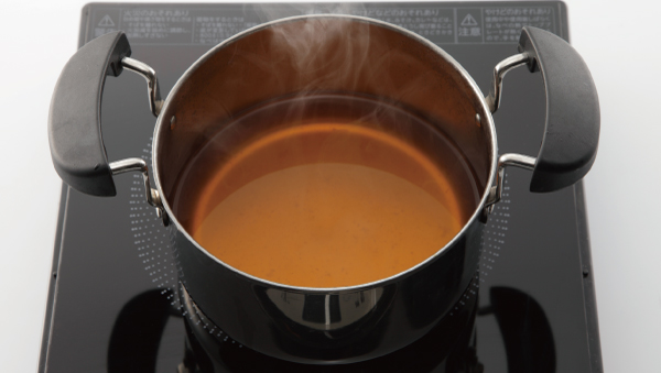 調理鍋からティーパックを取り除き、火から下ろす。保温容器にセットして15分保温調理する。