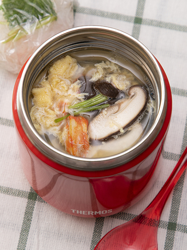 スープジャーに熱湯(分量外)を入れ、フタをせずに5分以上保温する。