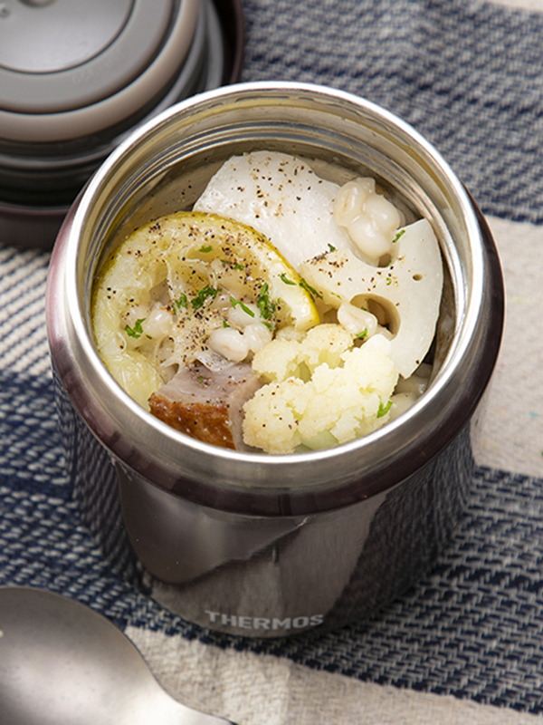 スープジャーのお湯を捨て、3を入れ、3時間以上保温して完成。