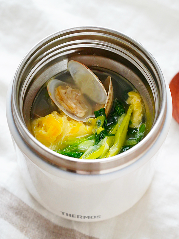 あさりとほうれん草のふわ卵ねぎ塩スープ