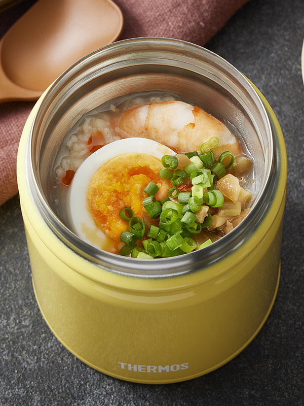 スープジャーにオートミールと温めただし汁を入れておくだけという、とってもシンプルな工程。お好みのトッピング次第で、味や食感のバリエーションを楽しむことができます!