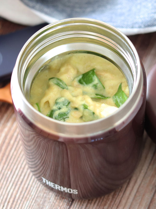 スープジャーの湯を捨てて1を入れ、フタをして2時間程度保温する。