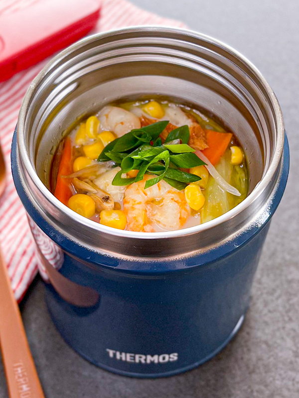 しらたきを使って低カロリー!スープジャーで長時間保温しても麺のようにのびないのでいつでも美味しく召し上がっていただけます♪