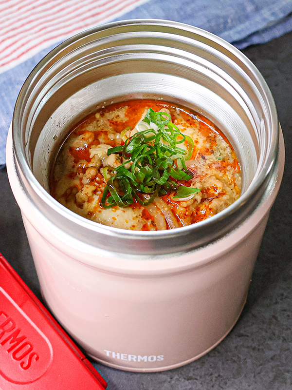 ・ピリ辛にしたい場合は、スープジャーにスープを入れた後、ラー油をかけてください。