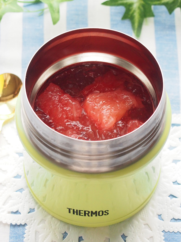 スープジャーの中の氷水を捨て、2を注ぎ、フタをして3時間以上保冷する。