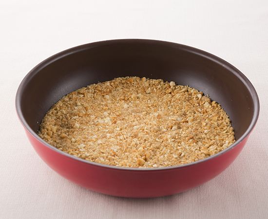 クラッカーはビニール袋に入れて、麺棒などで叩いて粉々にする。レンジに20秒ほどかけて溶かしたバターと、牛乳大さじ3を加えて手でよく揉んで混ぜ合わせ、まとめて5分ほどおく。