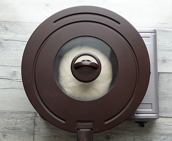 ※ふくらみが足りない場合は、再度弱火で30秒加熱後、保温カバーをかぶせて追加発酵する。