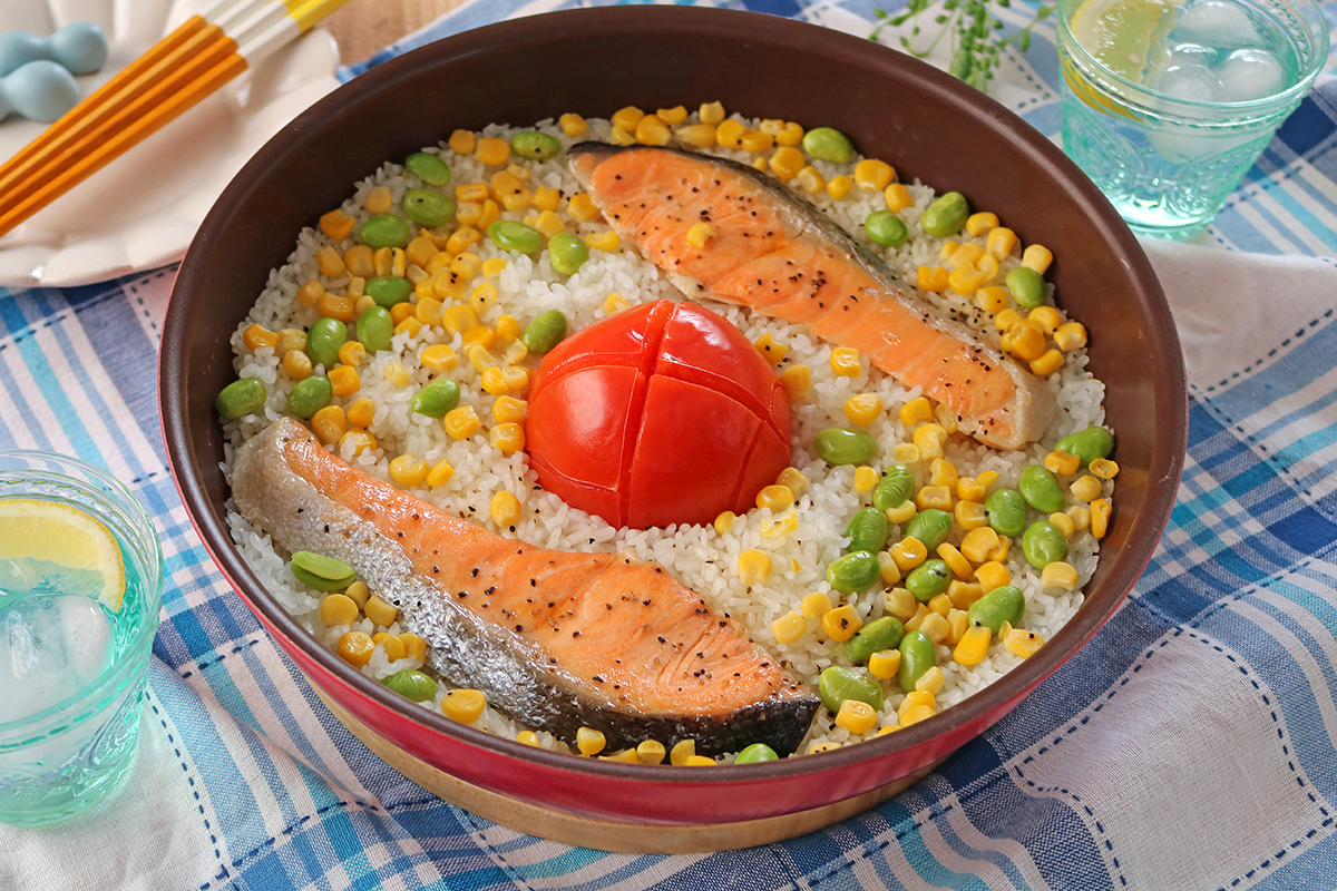 鮭と丸ごとトマトの塩バター炊き込みごはん