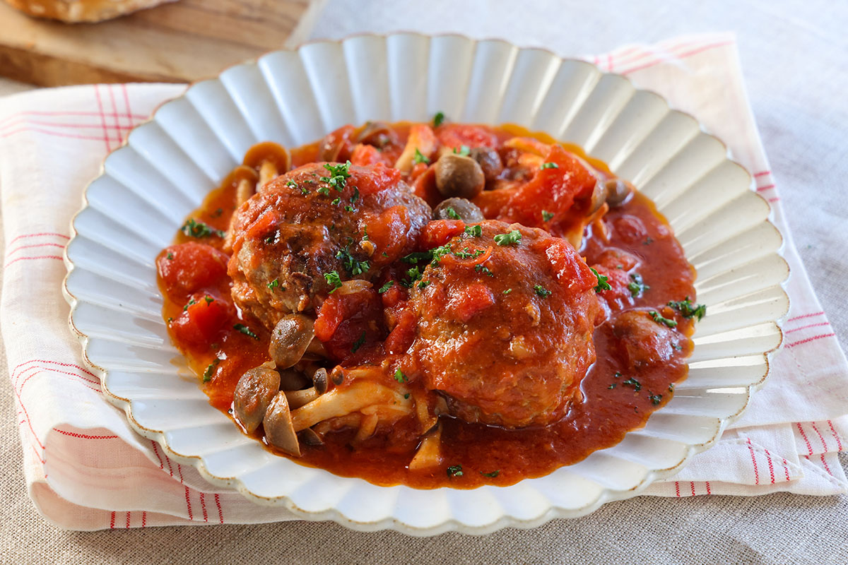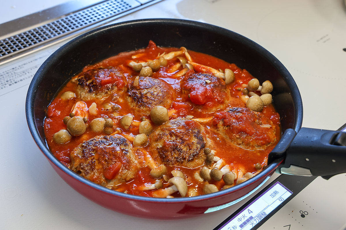 トマトの爽やかな香りたっぷりの煮込みハンバーグ。