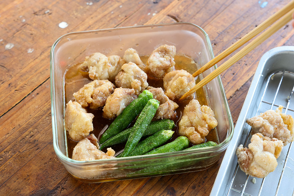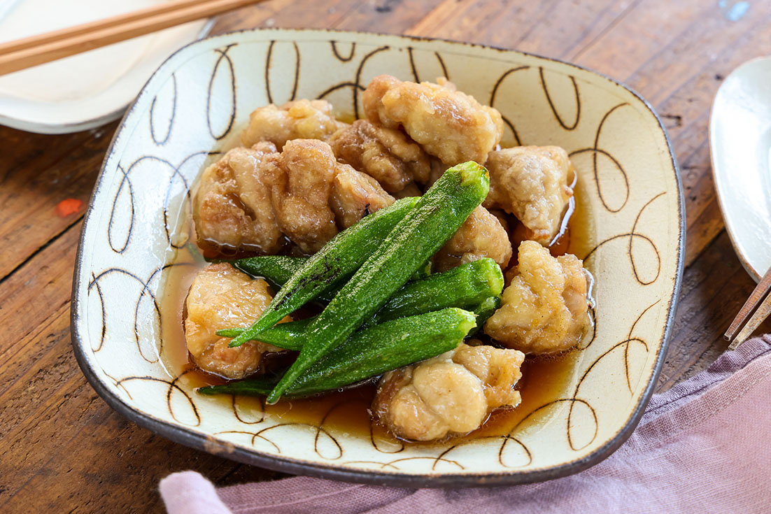 めんつゆで!鶏肉とオクラの揚げびたし