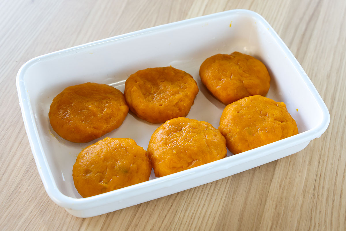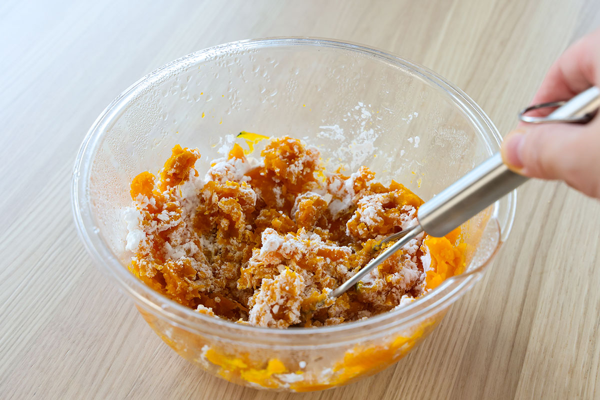 ・かぼちゃの水分量によって片栗粉の量を調節してください。