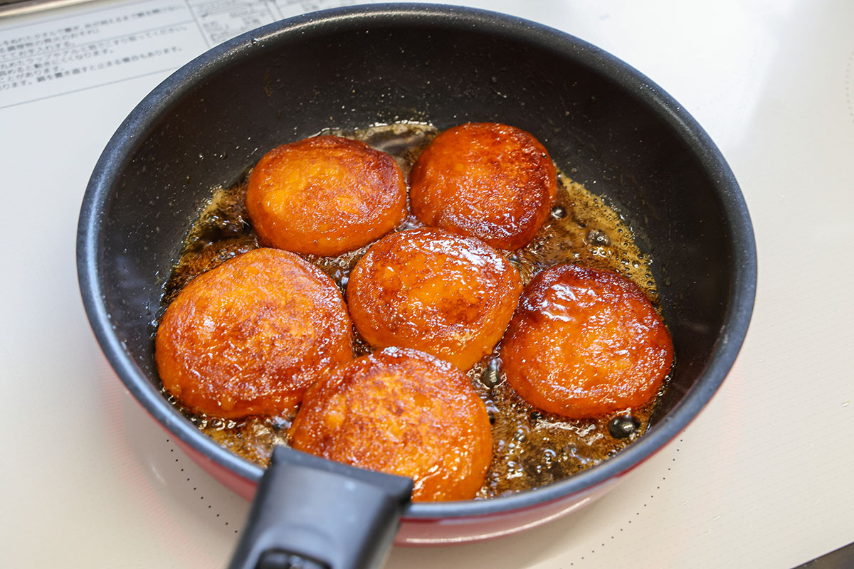フライパンにバターと油を入れて弱めの中火で熱し、2を並べ、5~6分かけて両面色よく焼く。