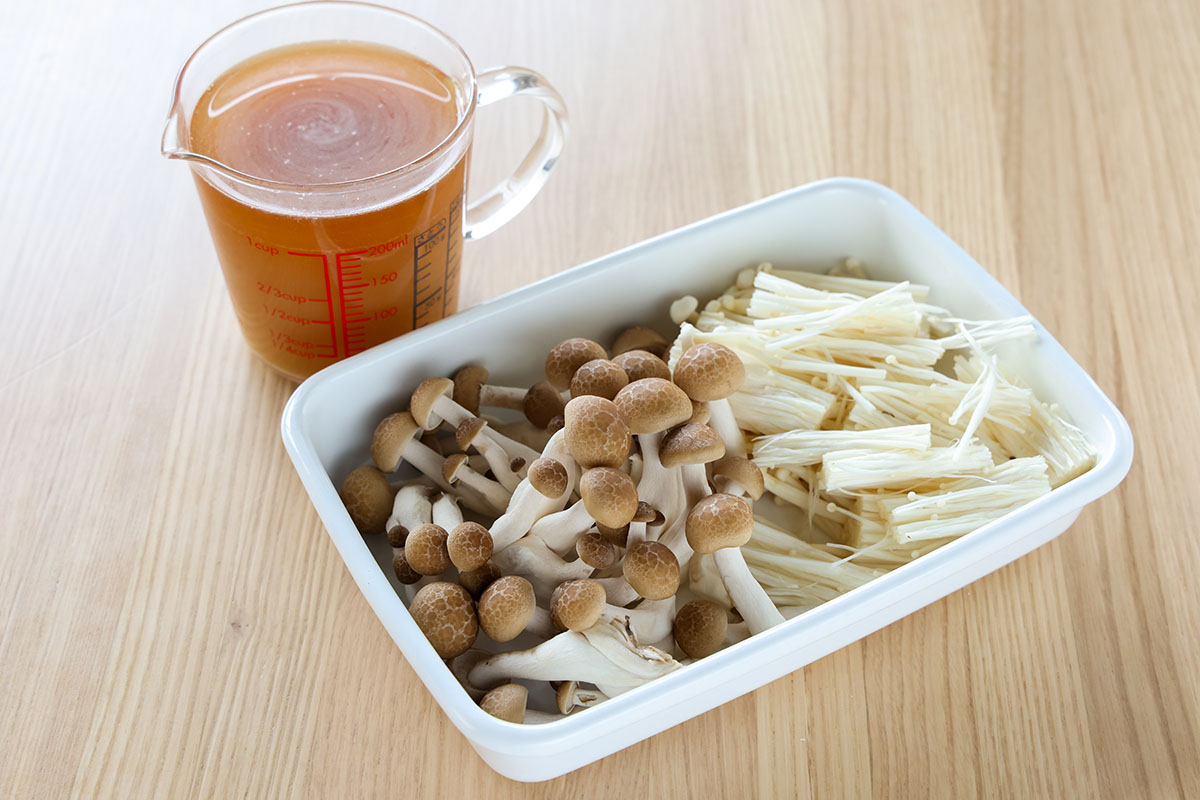 しめじはほぐす。えのきは長さを半分に切ってほぐす。Aは合わせておく。