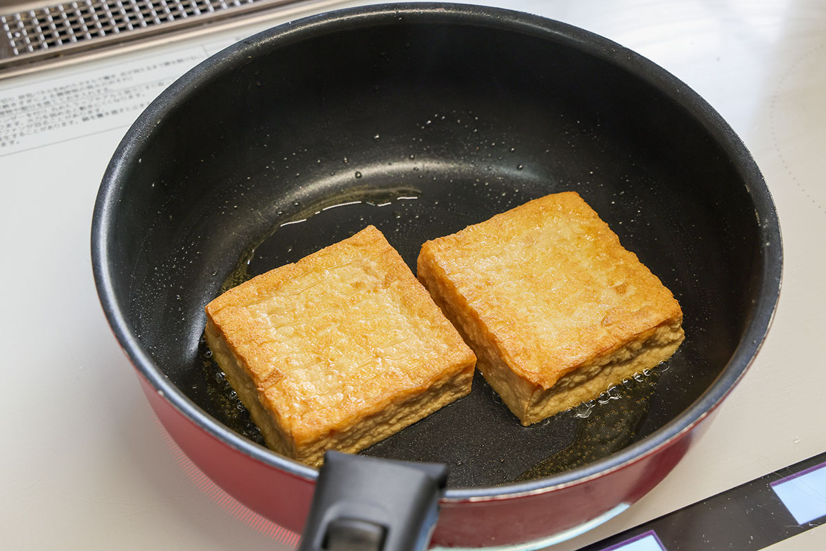 フライパンにごま油を中火で熱して厚揚げを焼き、器に盛る。