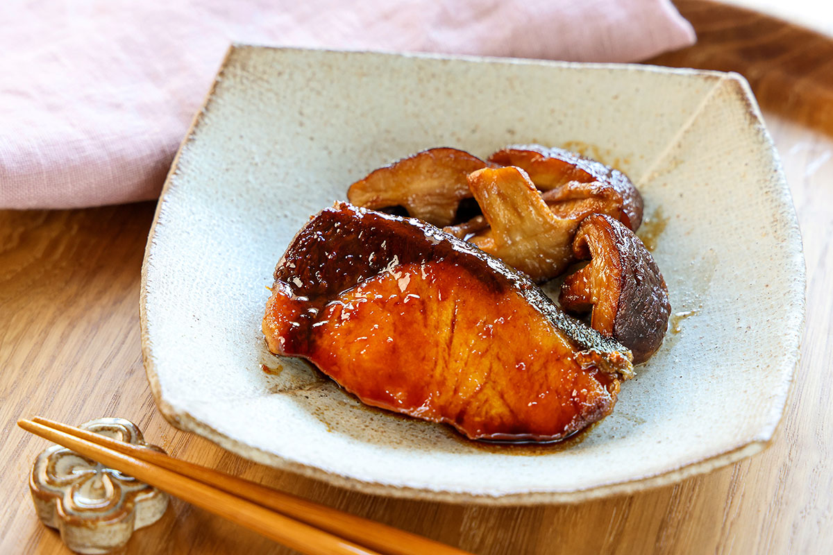 フライパンに油を中火で熱し、ぶりを焼く。焼き色が付いたら裏返し、空いたところにしいたけを入れ、しいたけを返しながら2~3分焼く。