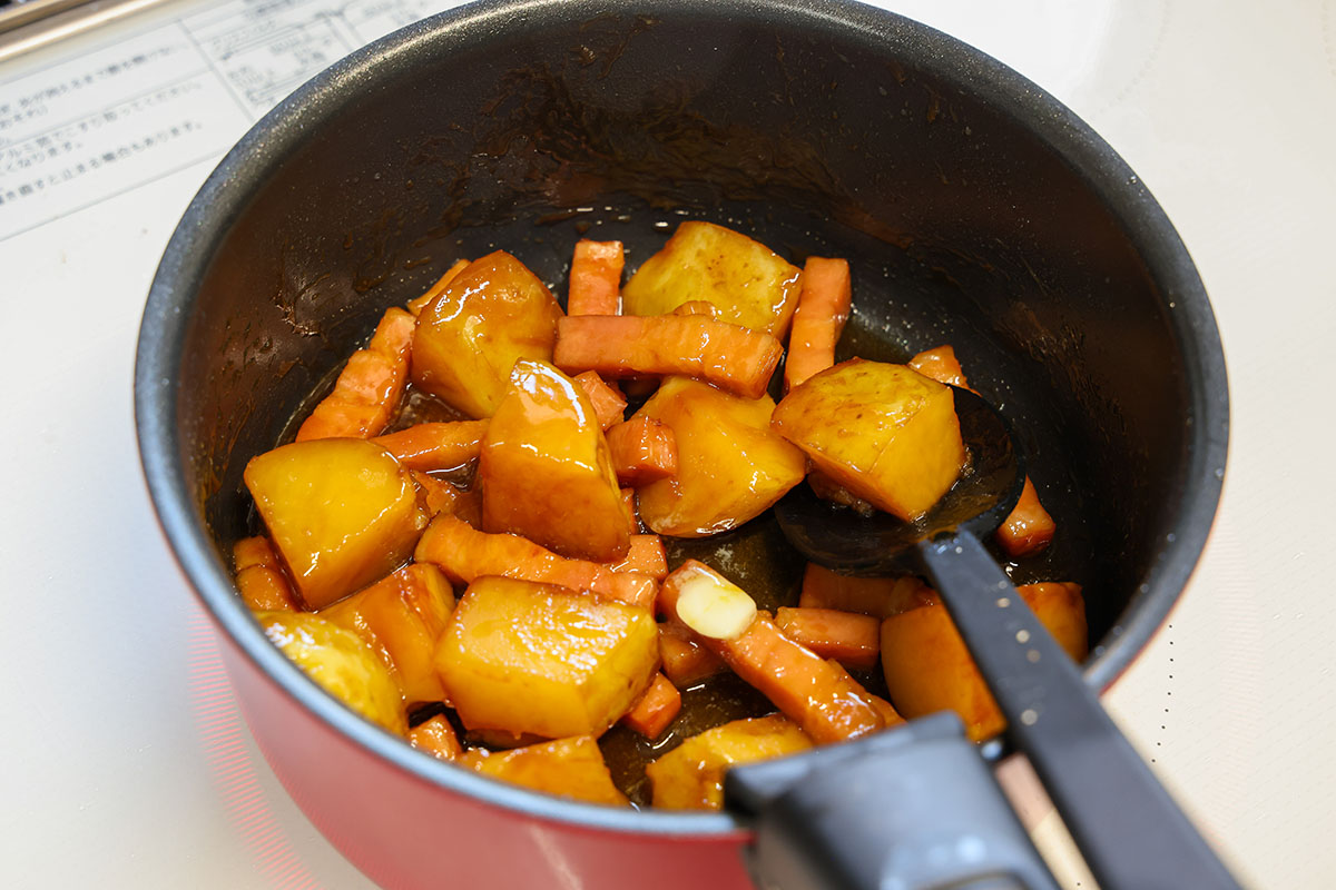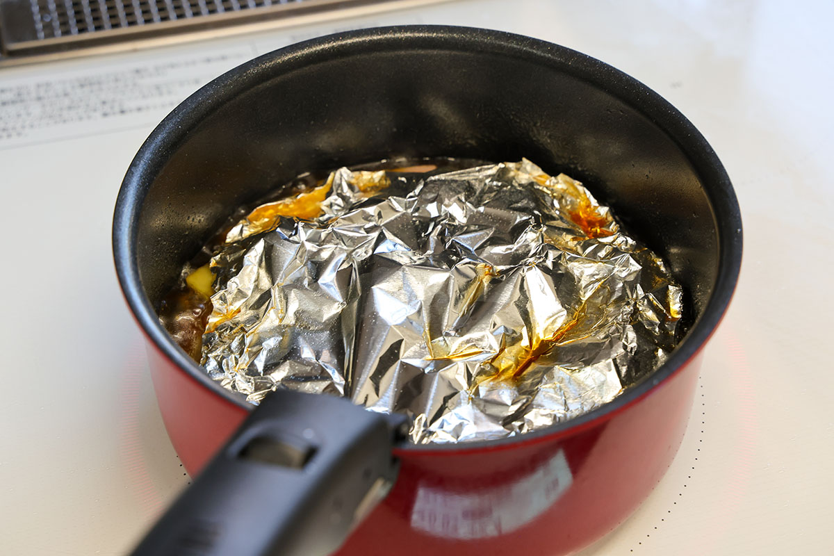 Aを加え、煮立ったら落とし蓋をのせ、弱めの中火で13~15分煮る。