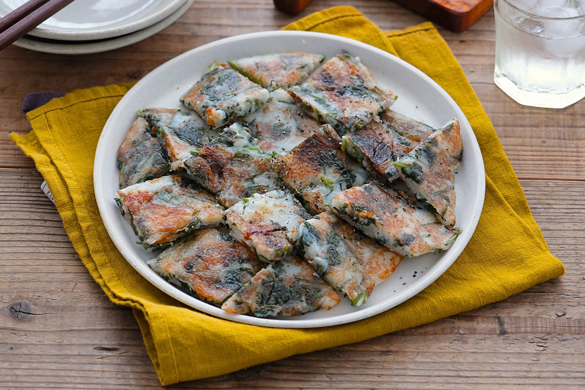 フライパンに油を入れて中火で熱し、2を流し入れ、4~5分、きれいな焼き色がつくまで加熱する。裏返してさらに2~3分加熱する。粗熱を取ったら食べやすい大きさに切り、粗びき黒こしょうをふる。