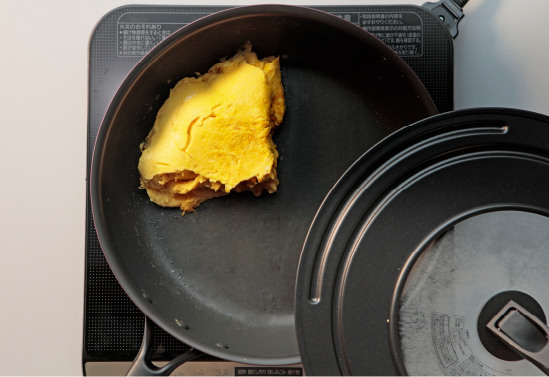 ・ふわふわ食感の厚焼き卵にするには、30秒フタをして蒸すのがポイントです。