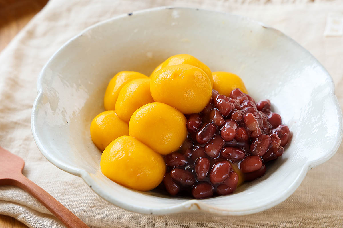 かぼちゃの風味がやさしいヘルシーな白玉団子。
