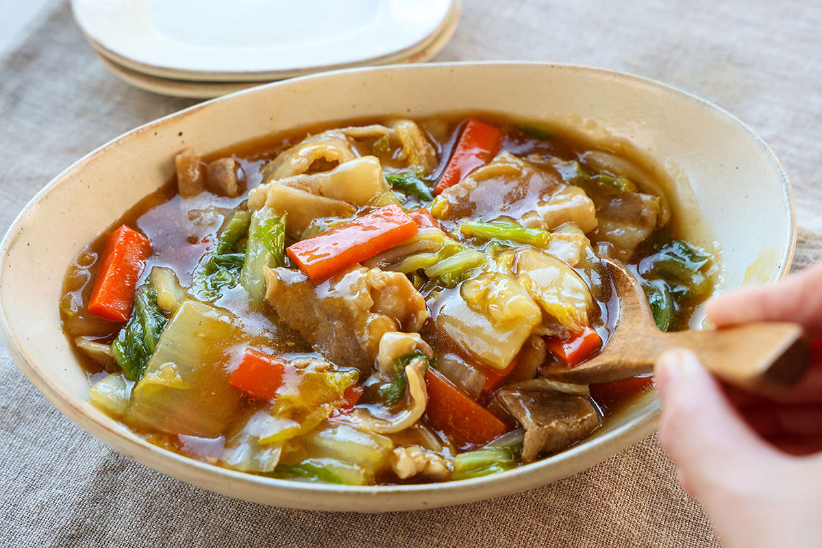 ・水溶き片栗粉はよく混ぜてから加えてください。
