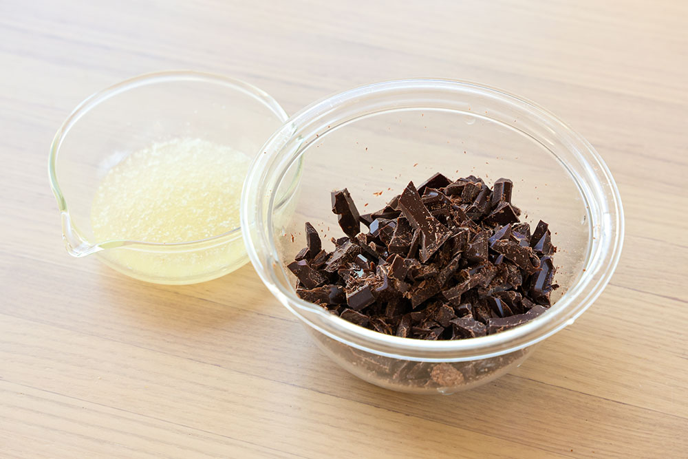 ゼラチンは水に振り入れてふやかしておく。チョコレートは細かく刻む。