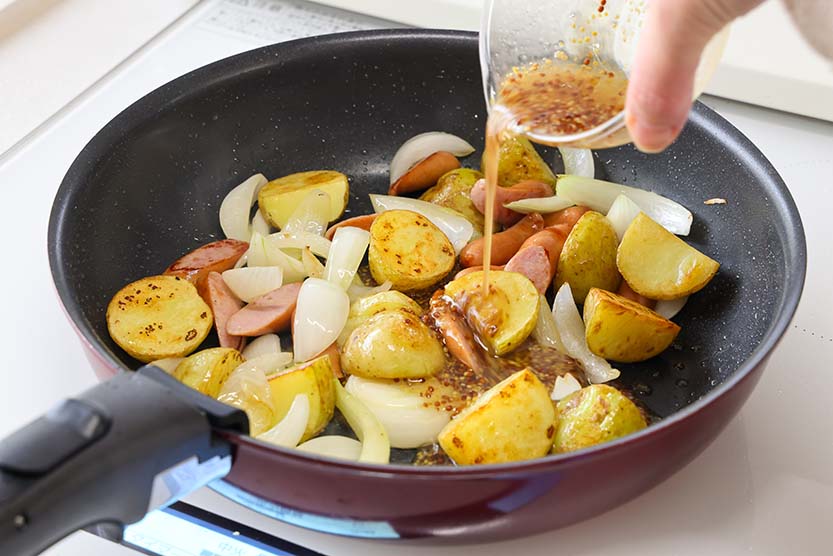 じゃがいもは軽く焼き色を付けて香ばしく仕上げます。