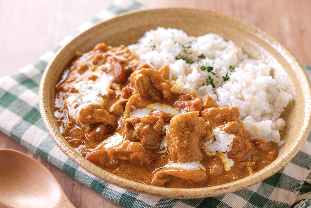 ・バターチキンカレーの仕上げによく生クリームが使われますが、手軽に作れるよう、ヨーグルトと牛乳を混ぜ合わせたもので代用しています!