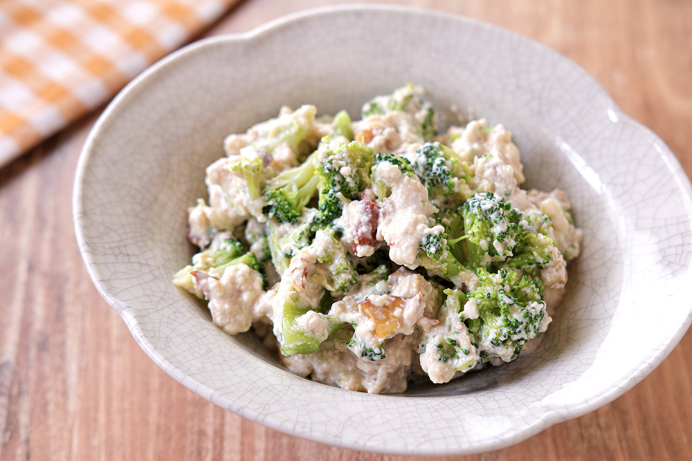 粉チーズの味わいとナッツの風味と食感がアクセントになった洋風の白和えです。