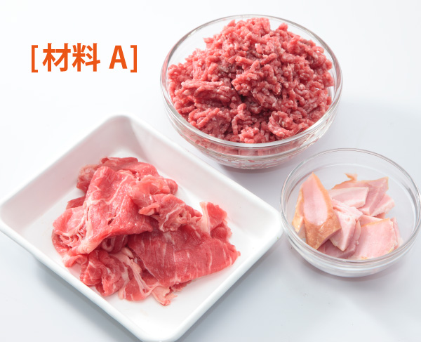 材料Aを用意しておく。スライスベーコンは3cm幅に切る。