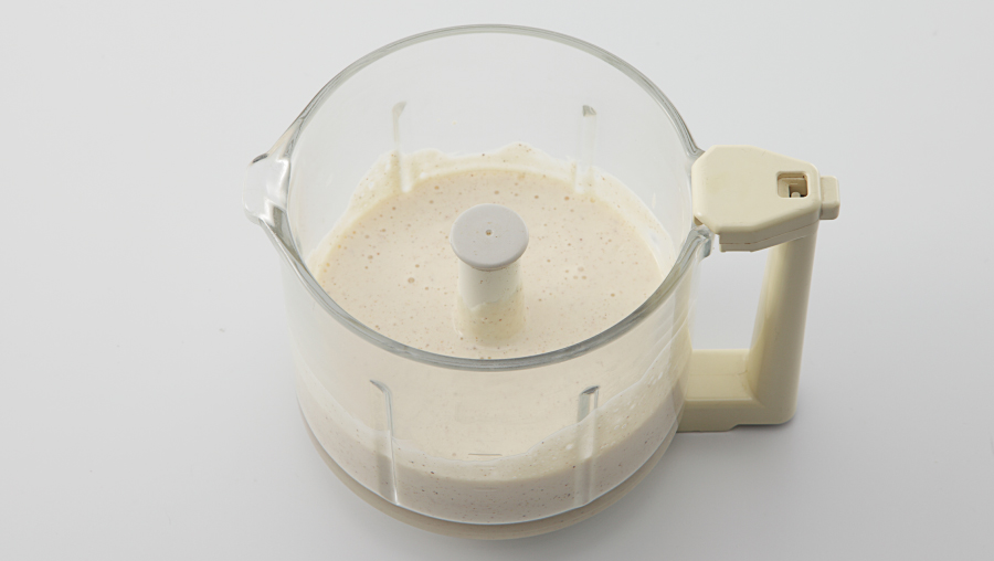 保温調理している間に[材料C]をミキサーにかけ豆腐のホワイトソースを作る。