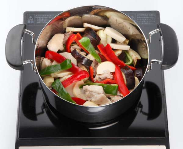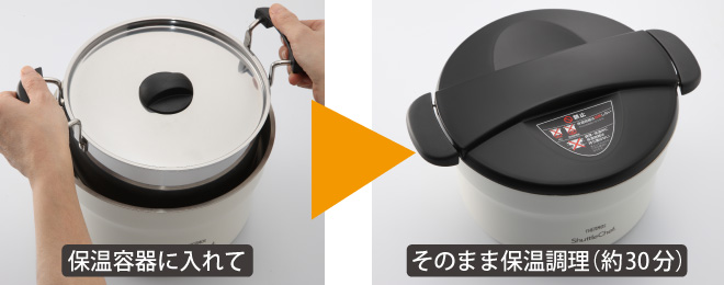 調理鍋を火から下ろし、保温容器にセットして30分保温する。