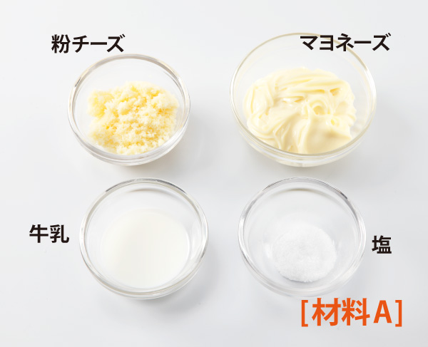 5をボウルに入れて、へらで荒めにつぶしながら、[材料A]を加えてよく混ぜ合わせ、ポテトサラダを作る。