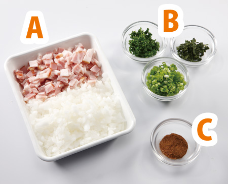 「材料A」と「材料B」をそれぞれみじん切りにしておく。