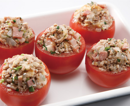 トマトの中にハーブをきかせた豚挽き肉をギュッと詰め込んで