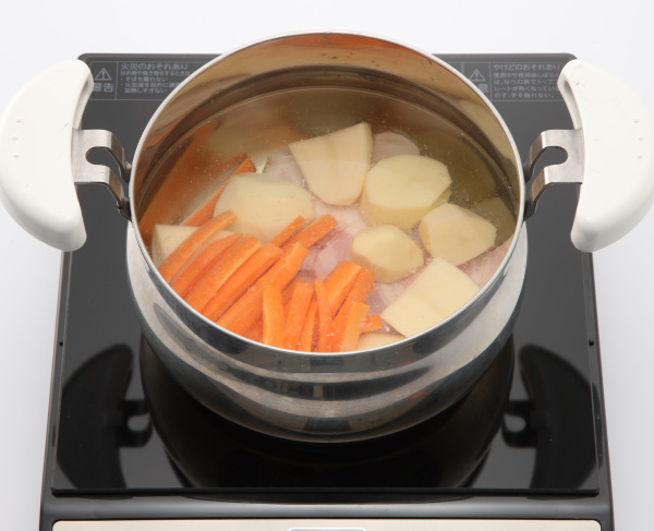 調理鍋に1とAを入れ、フタをして加熱する。