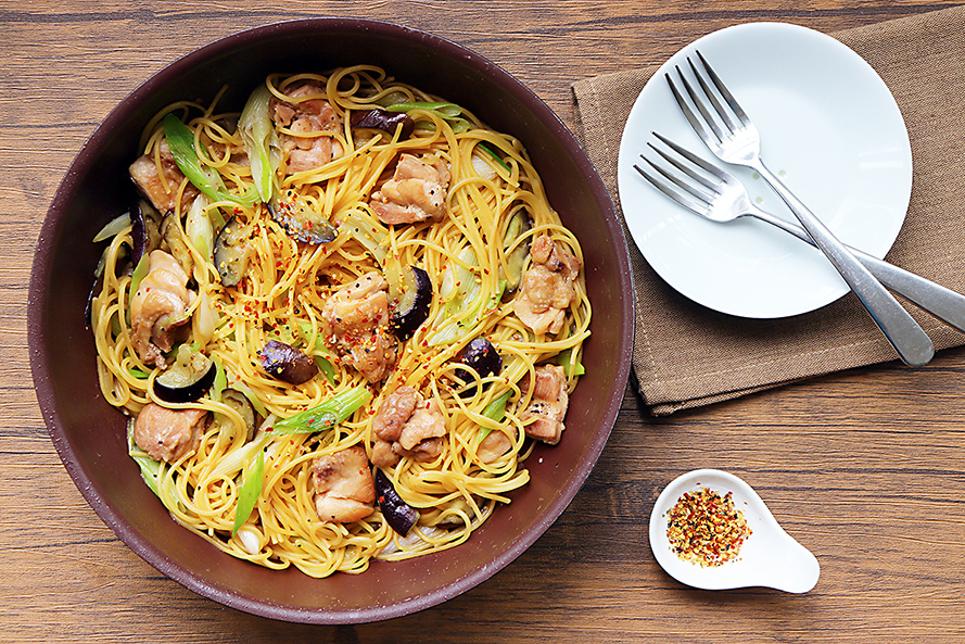 鶏もも肉となすのにらおろしだれ