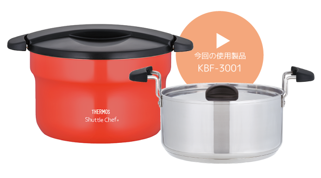 6. 材料Aを加え沸とうしたら火を弱めフタをして5分加熱したら火から下ろし、保温容器に入れて20分保温する。