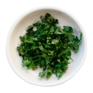 2. にんにく、玉ねぎ、パセリはみじん切りにする。唐辛子は種を取り輪切り、ベーコンは粗みじん切りにする。