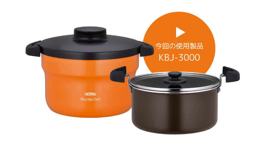 5. 沸とうしたら火を弱め、8分加熱したら火を止める。調理鍋を保温容器に入れて20分保温調理する。
