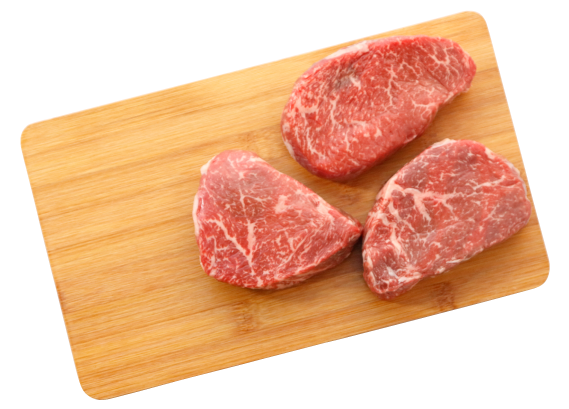 6. 保温調理完了を見計らってステーキを焼く準備をする。フライパンに3で取り出して置いた牛脂とオリーブオイルを入れ、油が出てきたら薄切りのにんにくを炒める。きつね色になったらにんにくを取り出し、バターを加えてステーキ肉を焼き始める。表面に塩と粗挽きこしょうをふり、牛肉をレアになるように焼いたら、醤油をフライパンの鍋肌から入れ全体に絡めて火を止める。