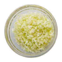 9. 所定の時間が経過したら軽く全体を混ぜ合わせ盛り付ける。6で取り出しておいたガーリックチップをちらして出来上がり。