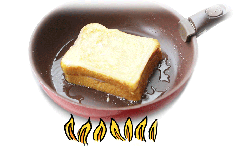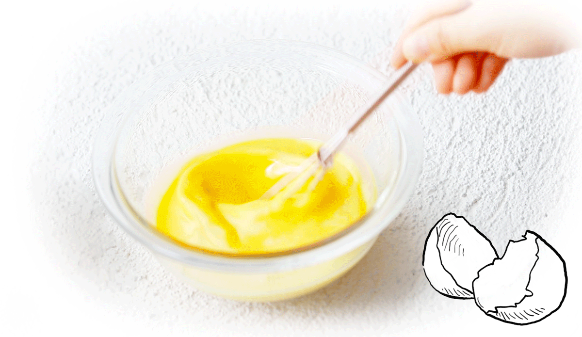 卵/牛乳/三温糖(上白糖でも可)/塩をよく混ぜ合わせ卵液を作り、バットなどに卵液を入れを浸す。裏返しながら卵液を全てまんべんなくしみこませる。