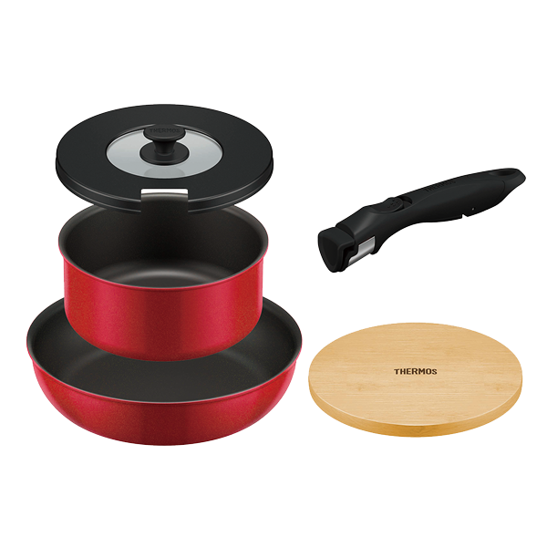 人気の深型フライパン24cm、煮込み料理に便利な18cm鍋、取っ手や鍋専用フタなどが一緒になったシンプルセット。フライパンは、耐摩耗性の高さと焦げつきにくさが特長です。木製プレート付きなので、アツアツの料理をそのままテーブルへ置くこともできます。
