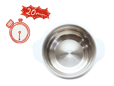 調理鍋を保温容器にセットして、20分保温調理する。(玉ねぎが大きい場合や所定の時間を経過しても柔らかさが足りない時は、お好みで保温時間を延長してください。)