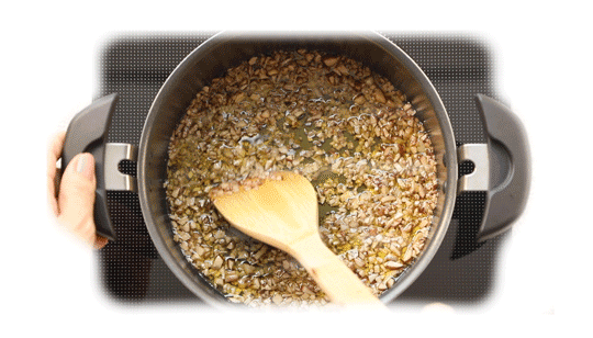 その後、[材料B]を加えて弱火で一煮立ちさせる。