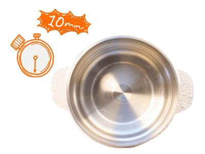 保温容器にセットして10分保温調理する。この間に餅をトースターなどでこんがりと焼いておく。