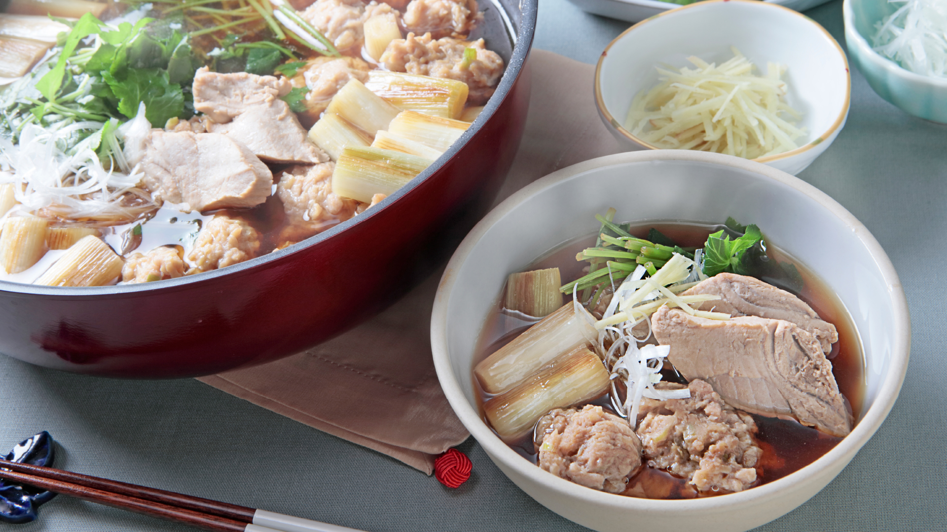 手軽に買えるマグロのたたきで作る旨みのぎゅっと詰まったつみれと、刺身用のマグロを使ったちょっと贅沢なお鍋。焼き色をつけた香ばしいねぎと生姜をたっぷり入れて、体も心も温まるお鍋をお楽しみください!