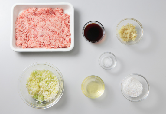 ボウルにすりおろした生姜、長ねぎのみじん切り、[材料A]を入れてよく混ぜ合わせつみれダネを作っておく。